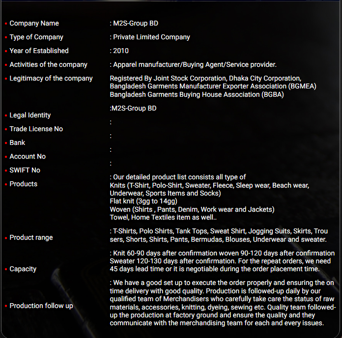Registered By Joint Stock Corporation, Dhaka City Corporation, Bangladesh Garments Buying House Association (BGBA)